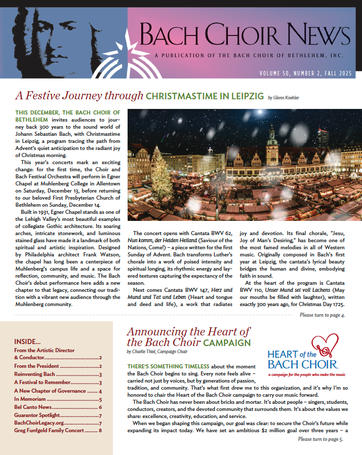 • Complimentary luncheon at the Bethlehem Bach Festival (membership levels apply)